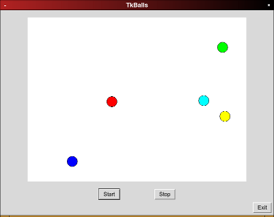 Here, at the end of the text, there's one more, a bit larger example-program. It shows several animated "Ball"-Objects in a graphical Tk-window: